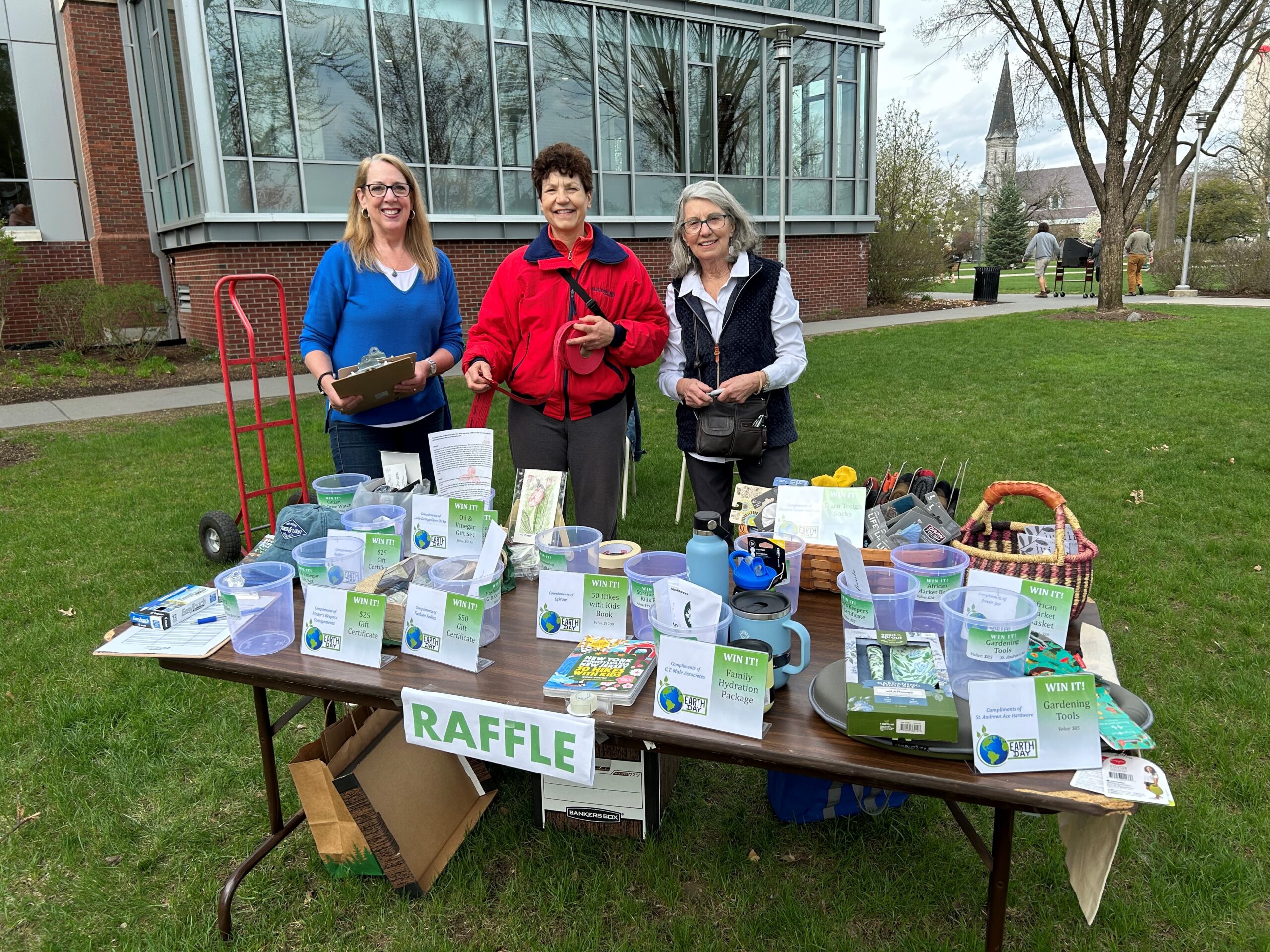 - Earth Day Celebration raffle table displays more than $3,000 worth of items donated by local businesses.