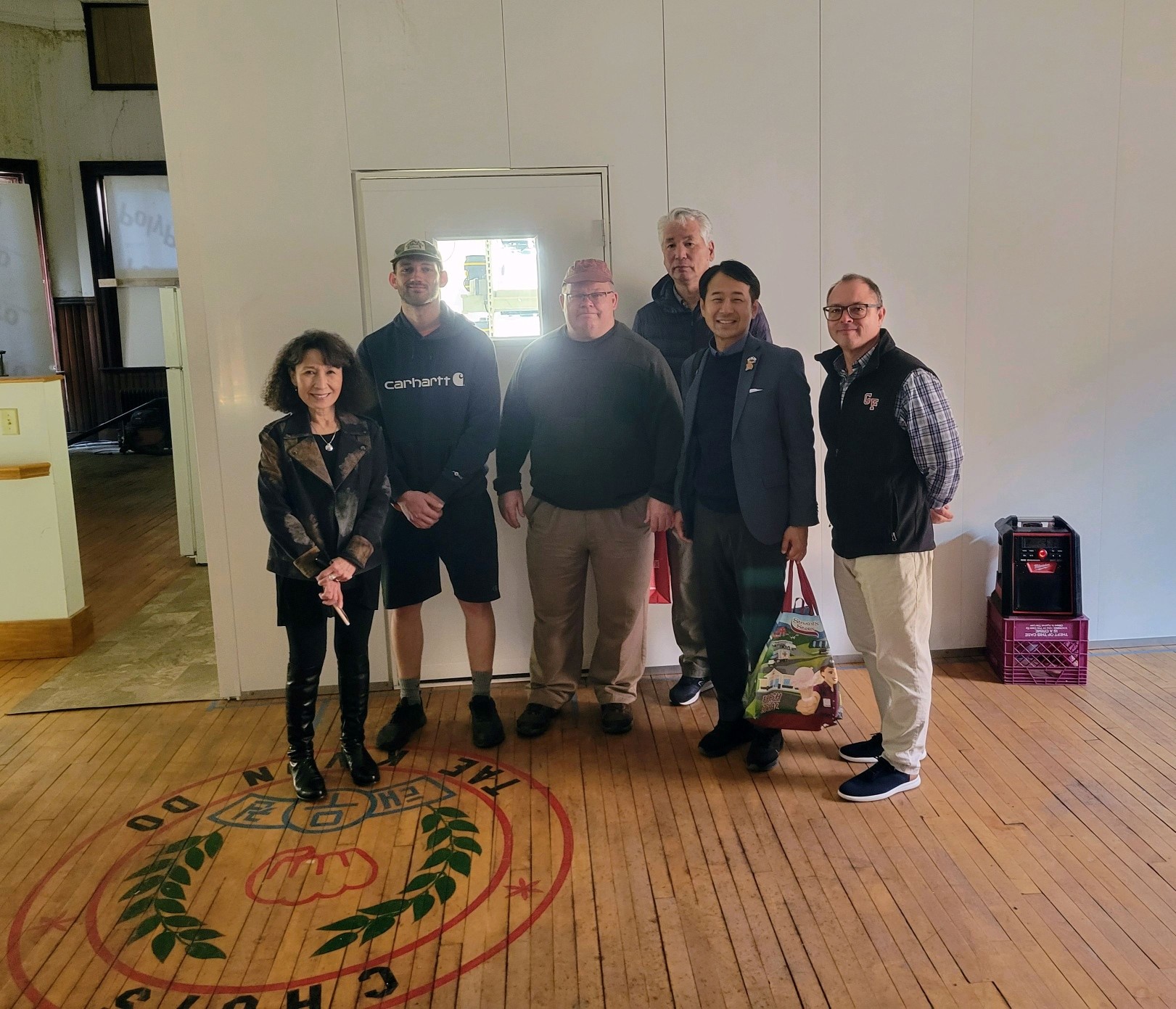- Japanese Representatives from Saga City pose in front of the city’s vertical farm.
