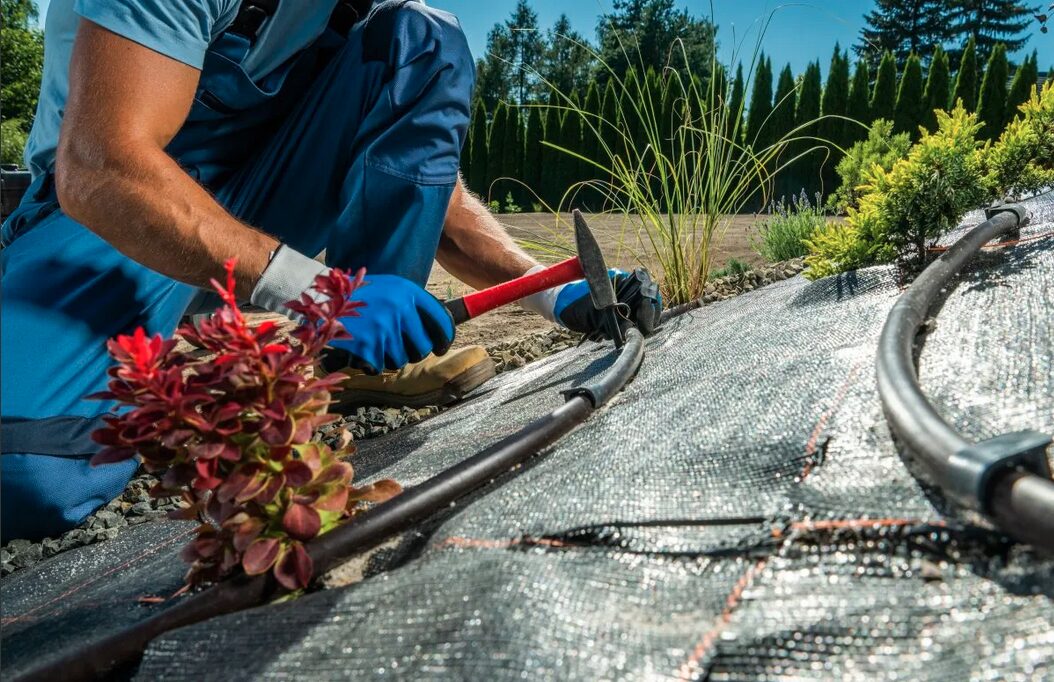 Man installing drip irrigation in garden.Photo: Virrage Images via Shutterstock
